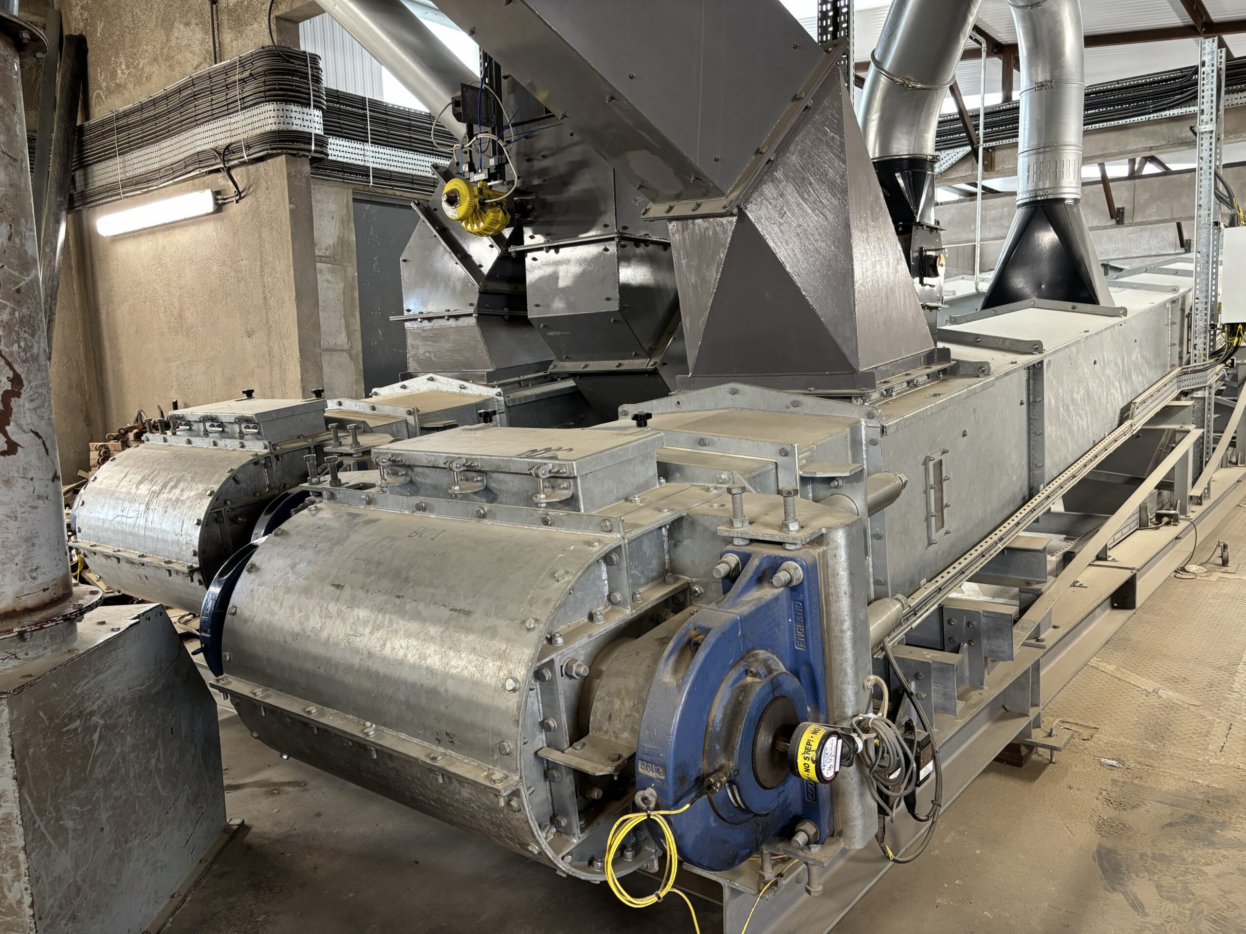 Silo 1& 2: The system is also integrated into a new dust collection & briquetting arrangement whereby the dust & screenings are transferred from around the silo block intake & storage facility into a collecting filter before being discharged via a rotary valve into a briquette producing machine. One system per silo block installed & operational.